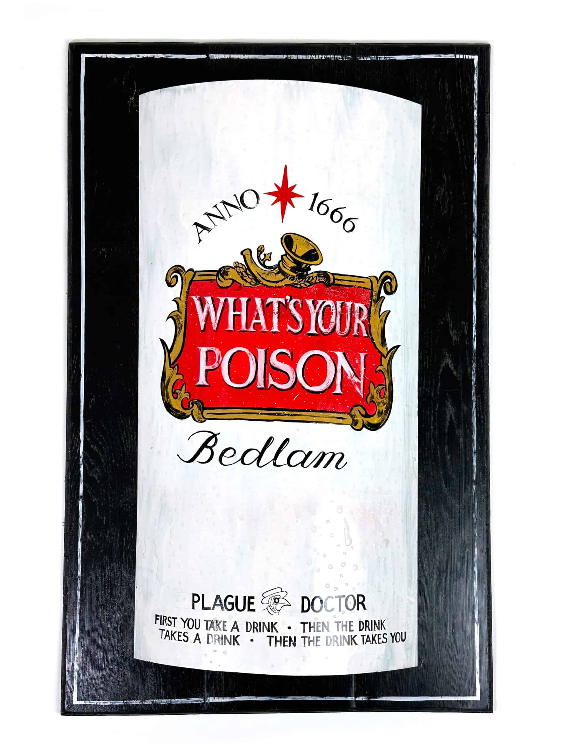 A numbered edition of twenty five original paintings and a few artist proofs. Painted on a panel cut from a recycled 200 litre steel drum once used for transporting vegetables. This is the first draught artwork of Bedlam Chilled and it is mounted on a panel of reclaimed floorboards. The can has been carefully embellished with condensation, drip by drip.